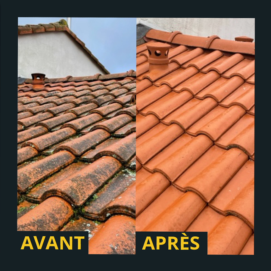 L’application d’un agent nettoyant facilite le nettoyage mécanique afin d’éliminer l’encrassement du support qui fixe l’humidité et rend poreux les matériaux de vos toitures.